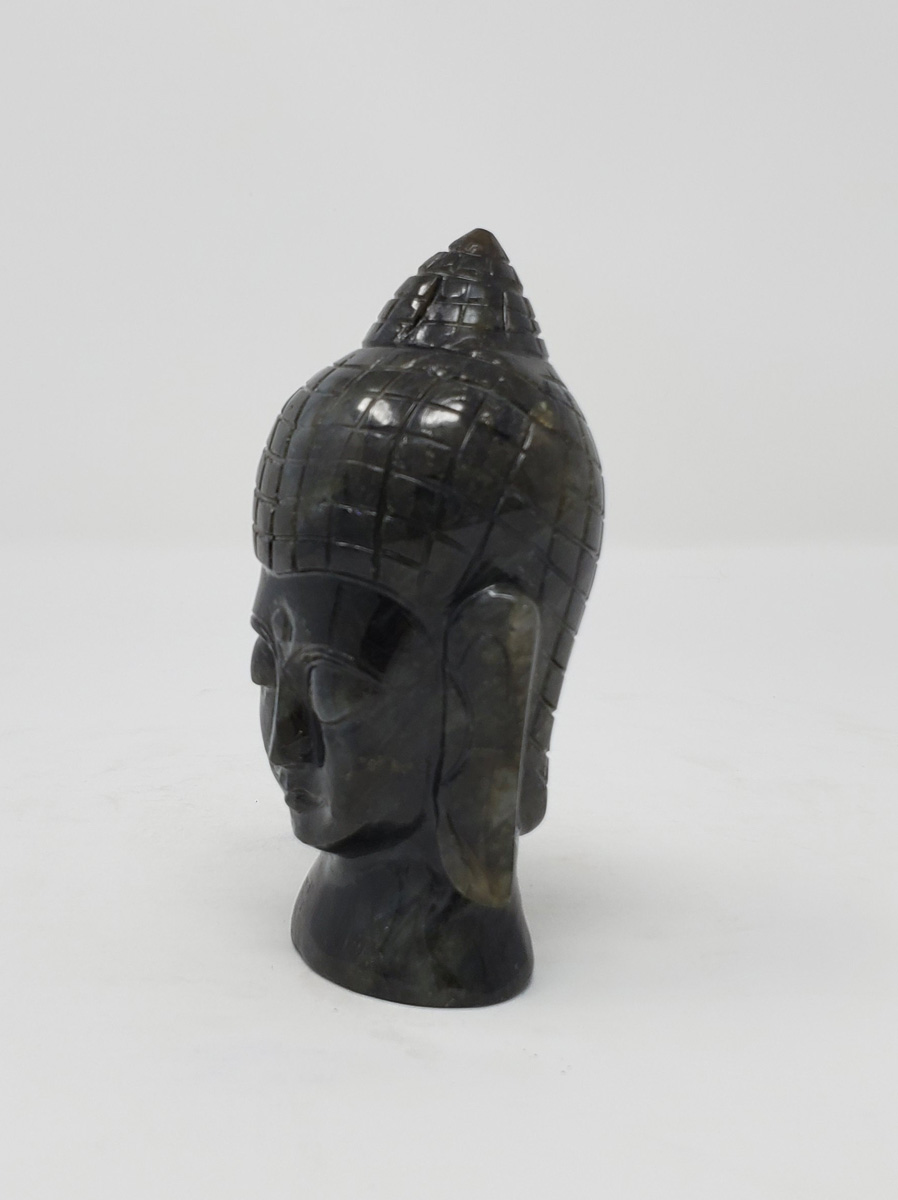 “Buddha”, meaning awakened one or enlightened one is a title, not a name. Shakyamuni Buddha, whose original name was Gautama, was the founder of Buddhism.This Lord Buddha statue is a one of a kind sculpture, hand carved by our artists using hammer and chisel on a natural Labradorite Gemstone.